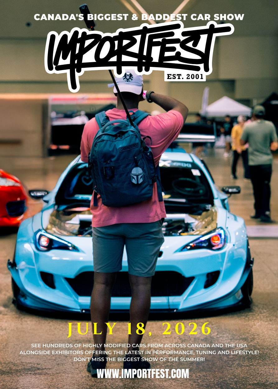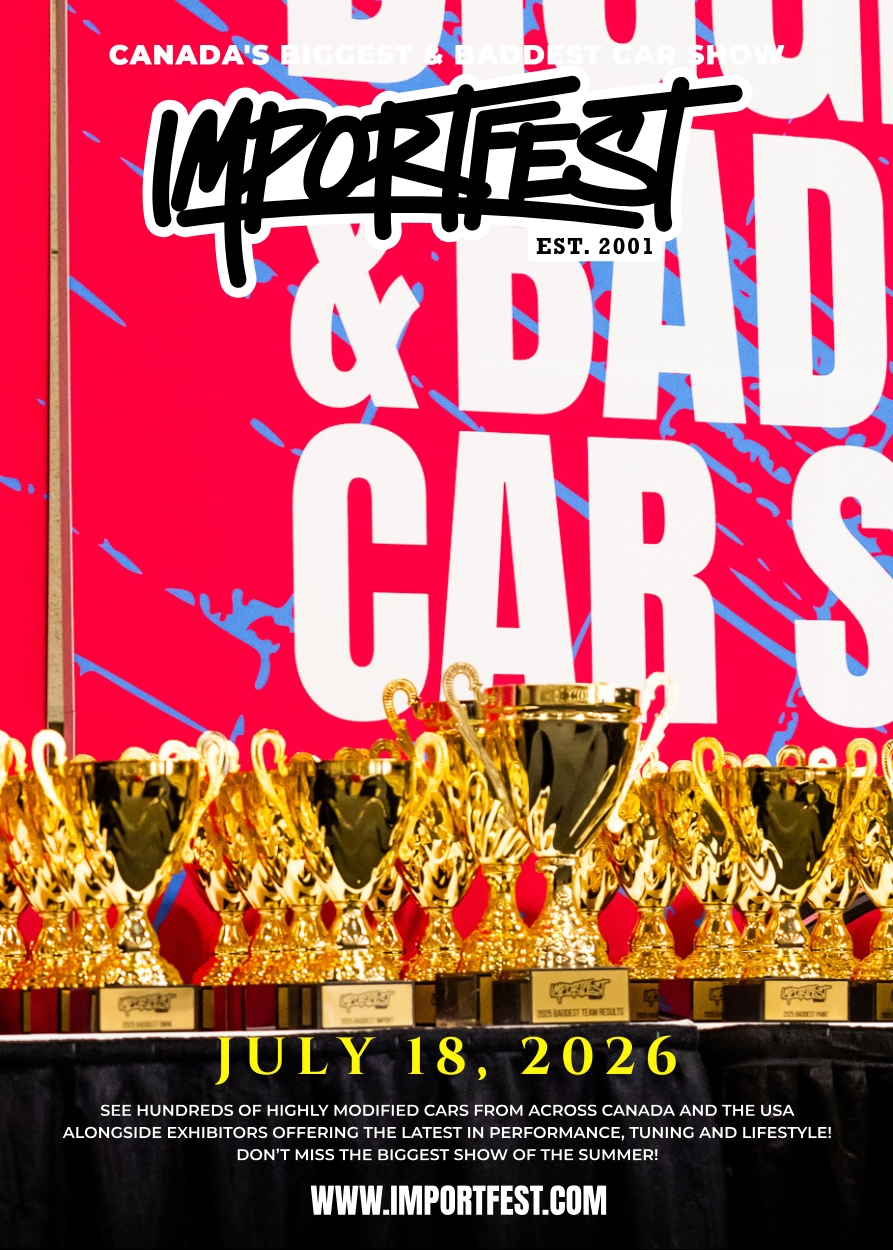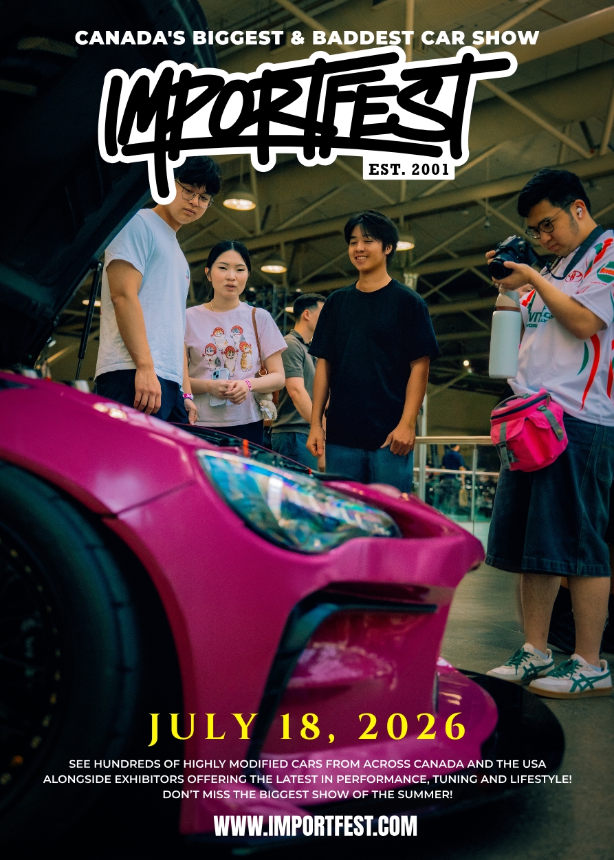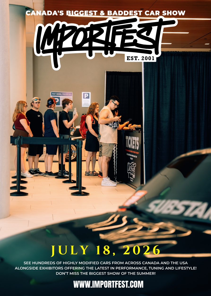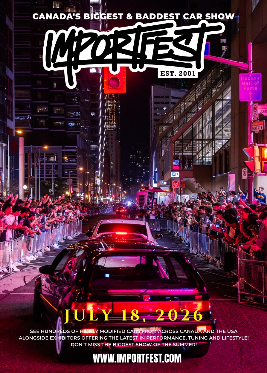 ImportFest is scheduled for Saturday, July 18, 2026, inside the Metro Toronto Convention Centre (North Building). ImportFest is a one-day car show open to the public and is an all ages event from 11am to 10pm.